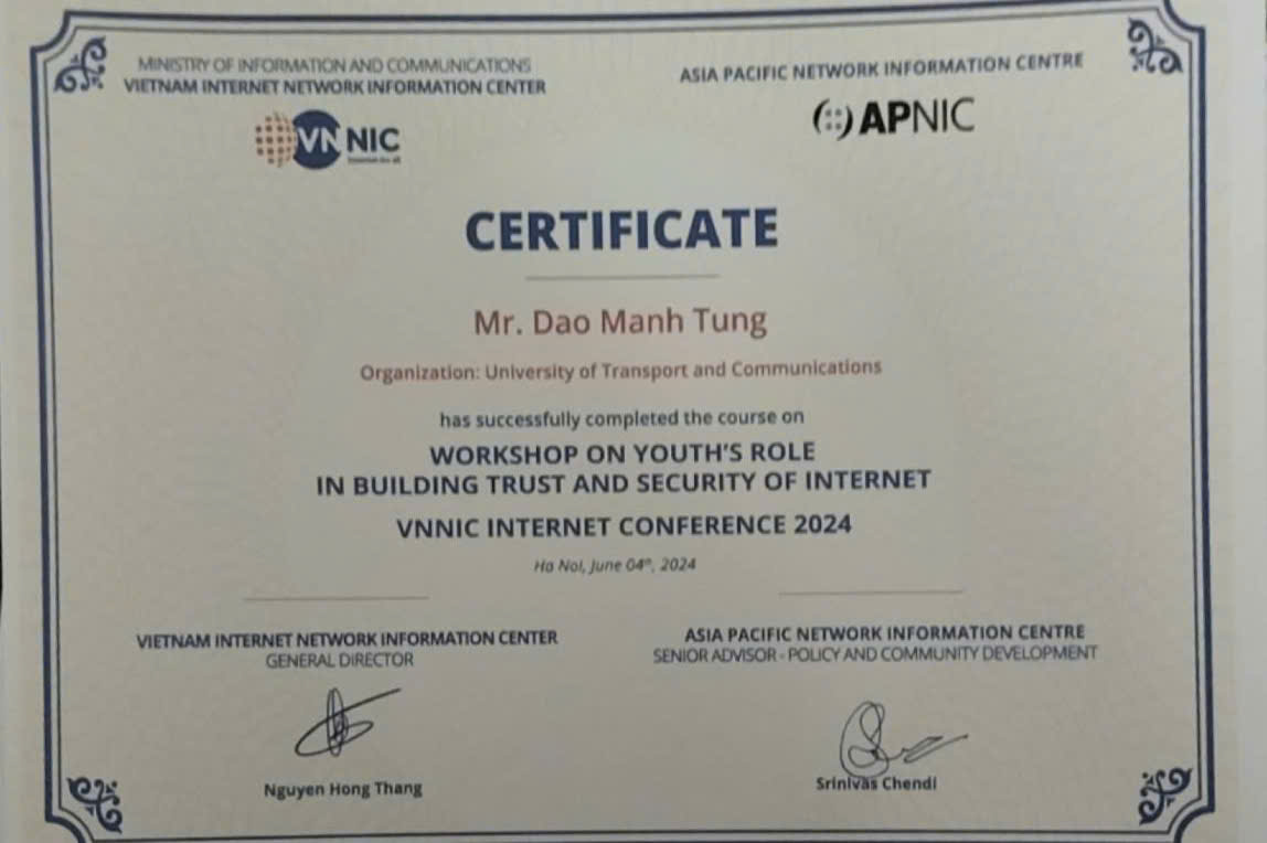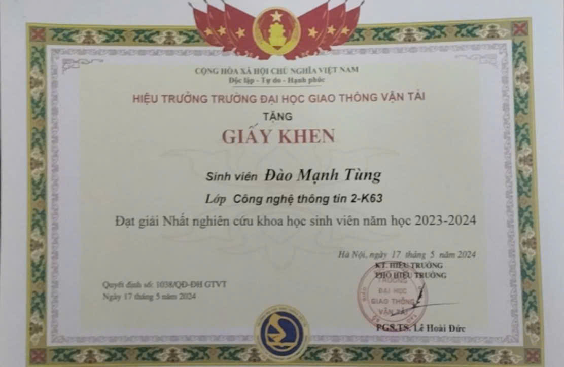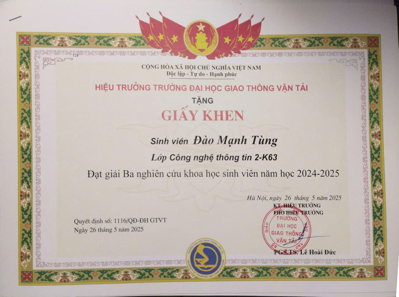 - Full-stack Developer – Final-year student, University of Transport and Communications